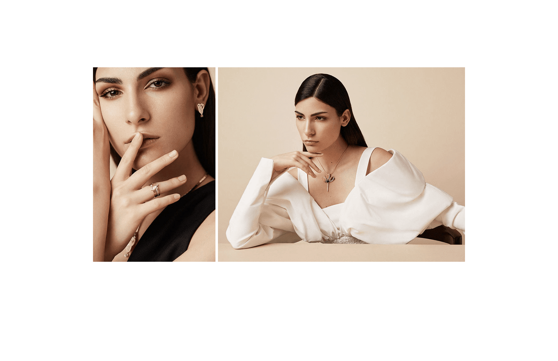 Kuwaiti bespoke fine jewelry designer May Al Qassar reconfigures the formal aesthetics of the Arabic script and transposes it into her jewelry, creating pieces with personalised narratives exclusive to its respective wearer.